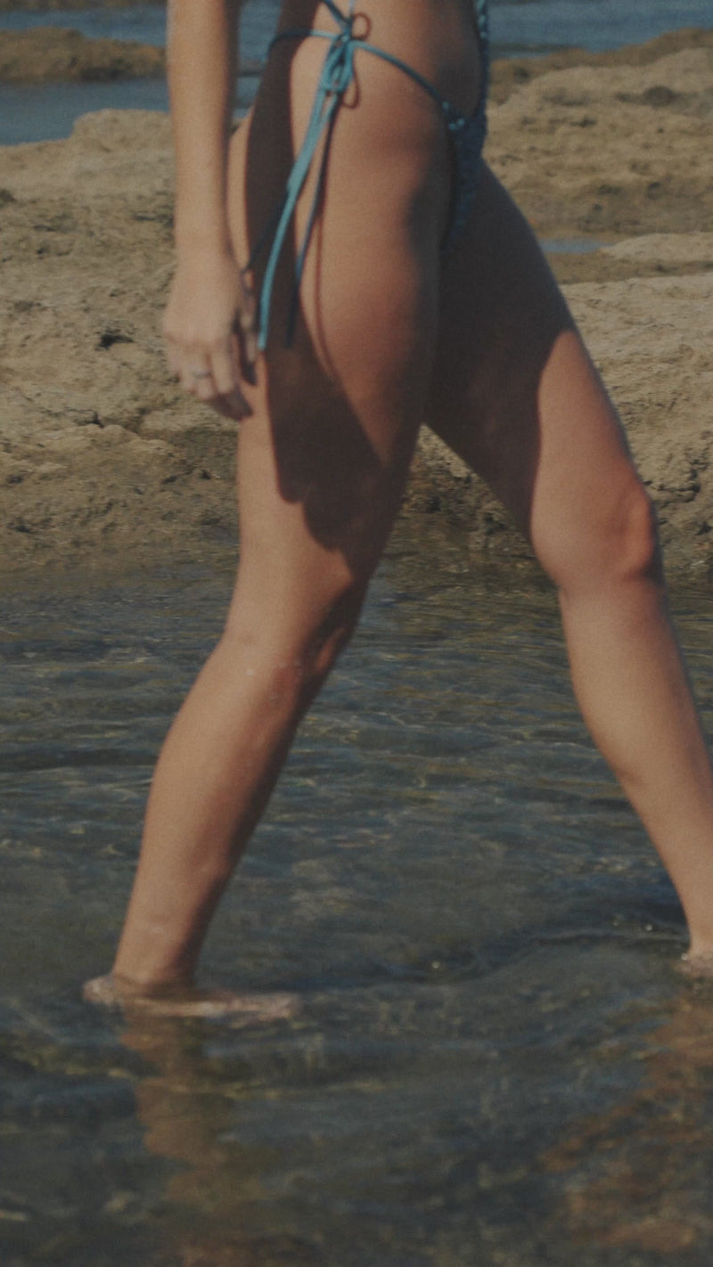 Handcrafted in Medellín, Colombia, this sculptural macramé one-piece takes over 20 hours to dye, knot, and shape -- entirely by hand. Each strand is individually hand-dyed before being woven into a bold, openwork silhouette that feels more like wearable art than swimwear.